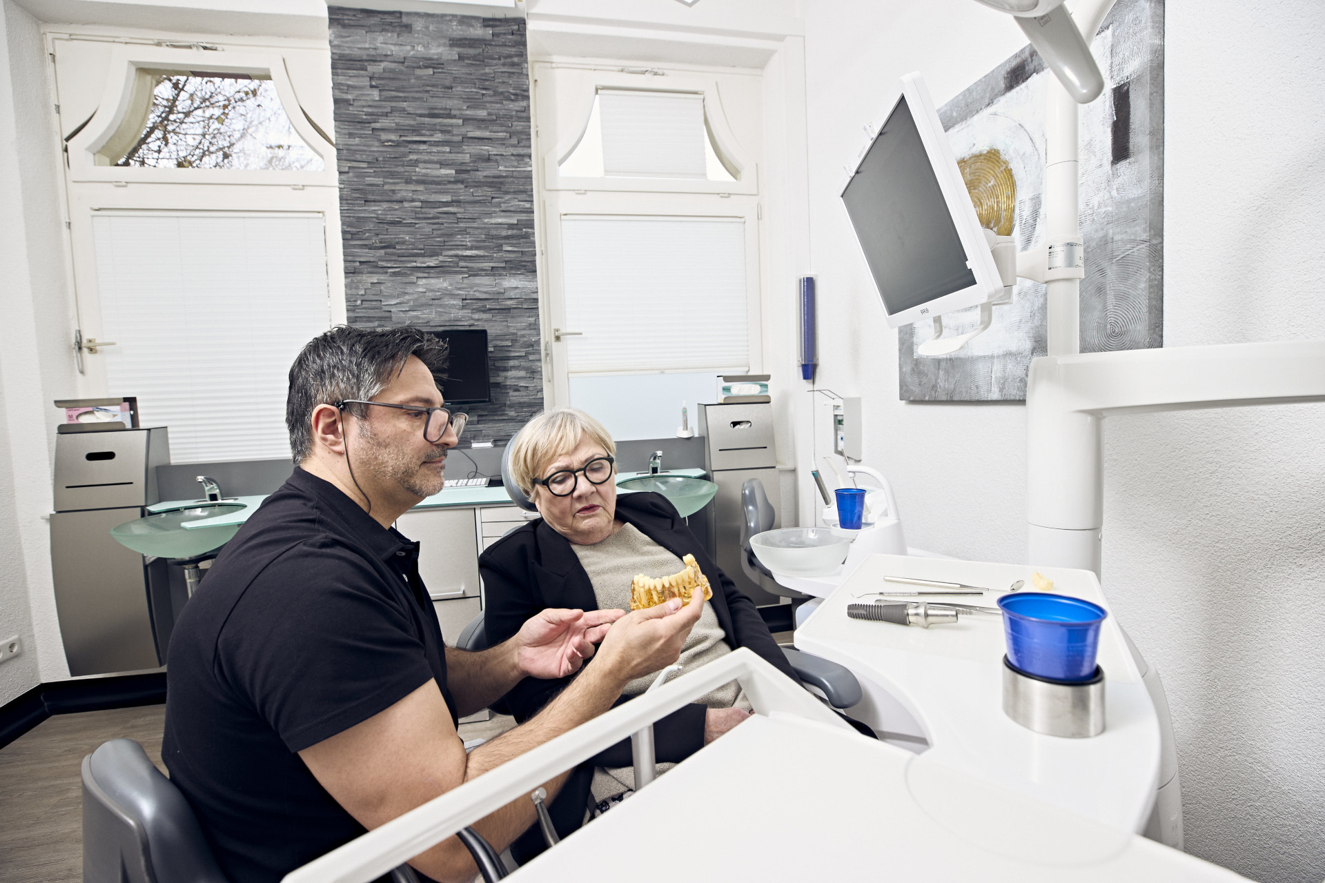 Qualität aus Deutschland, die überzeugtZahnersatz in Philippsthal ist eine Kernkompetenz unserer Praxis, und unser Anspruch ist es, Ihnen eine langlebige und ästhetisch ansprechende Versorgung nach modernsten Standards zu bieten. Bei Ihrem Zahnarzt in Philippsthal setzen wir ausschließlich auf hochwertigen Zahnersatz, der in Deutschland gefertigt wird. Diese Wahl gewährleistet eine hohe Qualität und Passgenauigkeit, die nicht nur für ein natürliches Kaugefühl sorgt, sondern auch dazu beiträgt, Kiefergelenksprobleme zu vermeiden.